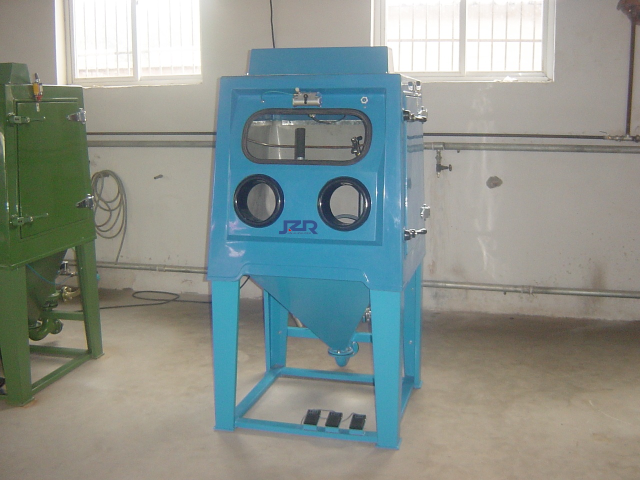 首先,液體噴砂機由磨液泵、水砂混合箱、攪拌裝置、噴射系統(tǒng)、控制系統(tǒng)機殼、自動化輔助系統(tǒng)等。磨液泵負責提供穩(wěn)定的水砂流,確?;旌弦旱某掷m(xù)供應;磨料混合箱配合攪拌系統(tǒng)為磨液泵提供水砂充分混合的介質(zhì)流,通過壓縮氣二次加速,形成均勻穩(wěn)定高速的的射流;噴嘴作為關鍵的噴射部件,負責將射流高速噴射到被加工表面上;機殼具備遮蔽及導流的作用,讓射流中的水及磨料快速轉(zhuǎn)移動混合箱中,從而讓噴射工作形成閉環(huán)。