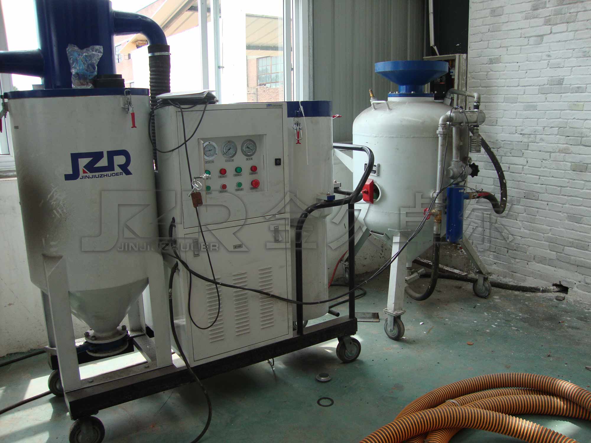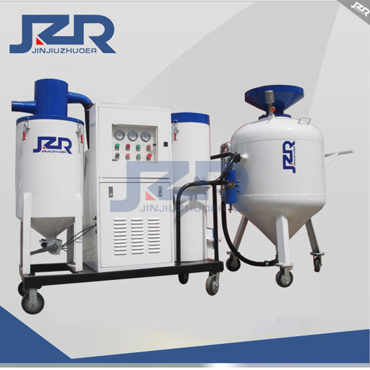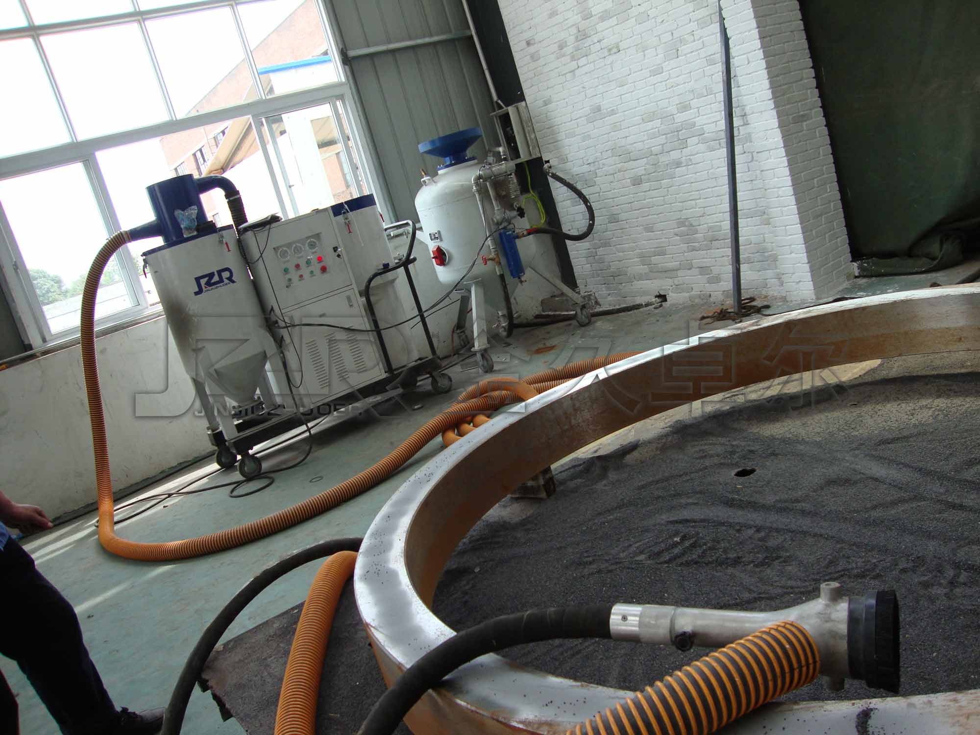JZF系列噴砂機(jī)是一種一機(jī)多用的噴砂設(shè)備,它同時(shí)具備開放式噴砂機(jī)、自動(dòng)循環(huán)回收式噴砂機(jī)、吸砂機(jī)、除塵器的 幾種功能。它可以單獨(dú)啟用其中任一功能。當(dāng)開放式噴砂機(jī)作業(yè)時(shí),如果同時(shí)啟動(dòng)回收系統(tǒng),即成環(huán)保 循環(huán)回收式噴砂機(jī),可以無塵噴砂作業(yè),避免因粉塵污染對(duì)工作現(xiàn)場和人員健康造成危害,大大降低了勞動(dòng)強(qiáng)度,提高了工作效率 。廣泛適用于集裝箱制造修理、造船和修船,工廠維護(hù)以及需要野外施工、搬運(yùn)、進(jìn)入大型工件、油罐、 車體內(nèi)部噴砂除銹作業(yè)。